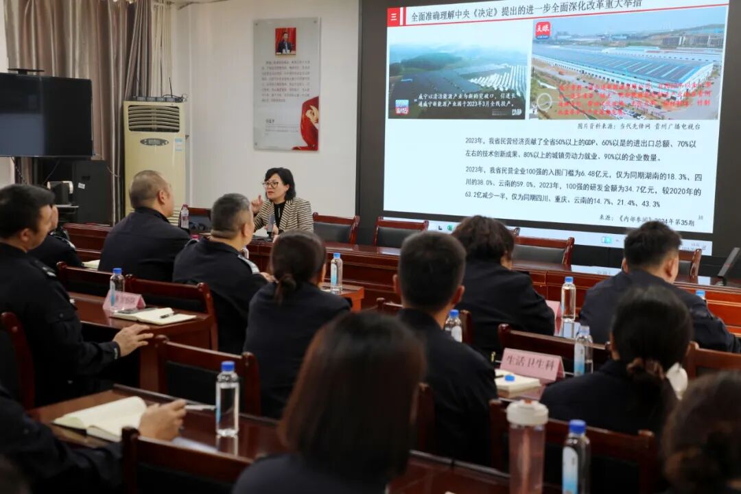省委政策研究室原副主任、一级巡视员丰莉,以“紧紧围绕推进中国式现代化进一步全面深化改革——学习贯彻党的二十届三中全会、省委十三届五次全会精神”为主题,围绕“深刻认识党的二十届三中全会的重大意义,深入学习领会习近平总书记在党的二十届三中全会上的重要讲话精神,深刻把握《决定》提出的进一步全面深化改革重大举措,以钉钉子精神抓好改革任务的落实”等四个方面,解读了党的二十届三中全会的精神实质及核心要求。
