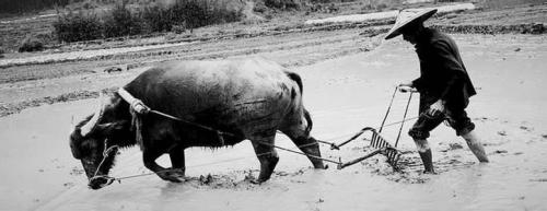 牛驯服地站在田土里,父亲熟练地套上犁,右手扶着犁把,左手握一竹条,猛然一鞭击向牛背,大喝一声,“走起!”只见一块块泥土在铧面上温顺地翻倒,犁开的水沟则荡起一道道规则的泥浪。牛鼻呼哧呼哧地喷着白气,驮着生活的重负奋力前行;父亲卷着裤腿光着脚,任春雨湿透全身,紧握犁把,匍匐在无边的田野里,在大地的书页上抒写着沾满泥香的诗行。