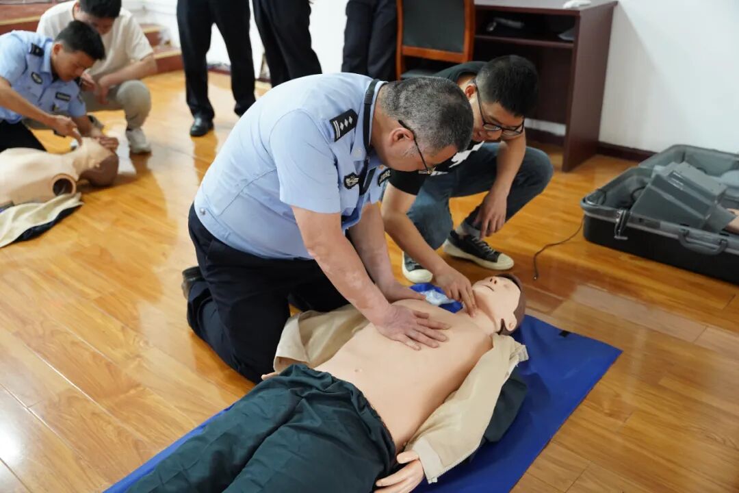 监狱通过公开招录的方式,形成了有医疗专业资格的民警21人的专业医疗团队,采用委托社会三甲医院跟班培养,自学提升、集中培训等形式,有效提升了医疗民警全科、专科诊疗能力。同时结合全警实战大练兵活动,邀请了遵义市第一人民医院急诊科专家为全监干警开展急救知识培训,重点围绕心肺复苏知识、CPR技术、除颤仪的基本操作,通过情景式教学和实操相结合的方式,进一步强化民警急救操作技巧,提高操作流程熟悉程度。