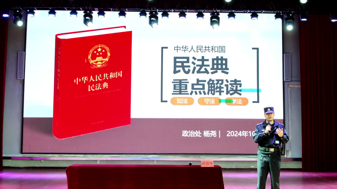 政治处民警杨尧以诙谐幽默的语言,结合身边案例讲授民法典。让原本严肃的法律知识变得生动有趣,使罪犯在轻松氛围中了解到民法典与日常生活的紧密联系,切实感受到法律对我们的重要保障。
