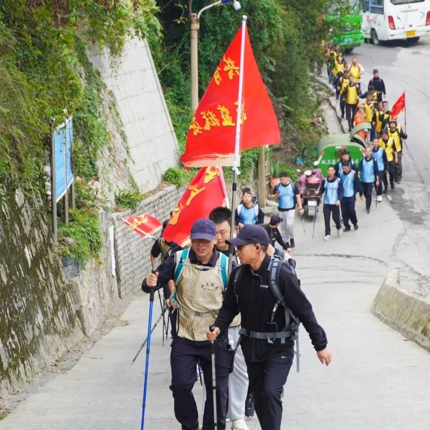 强体能。“滴”随着带队领导的一声令下,拉练活动正式拉开帷幕,全体人员士气高涨,朝着预定目标出发。为提高徒步拉练活动趣味性,途中还开展了支援前线、担架救援等辅助活动,让本次拉练内容更加充实、充满挑战。一路上,大家精神饱满、斗志昂扬,沿着蜿蜒曲折的山路你追我赶、步伐铿锵,又不忘相互鼓励、彼此关心,处处体现着团结与关爱,满脸的汗水和喜悦洋溢在山间,整个徒步过程既有当仁不让的拼搏,也有相互的互爱与帮助,形成了一道靓丽的风景线,他们用实际行动诠释了“不抛弃、不放弃”的团队精神。
