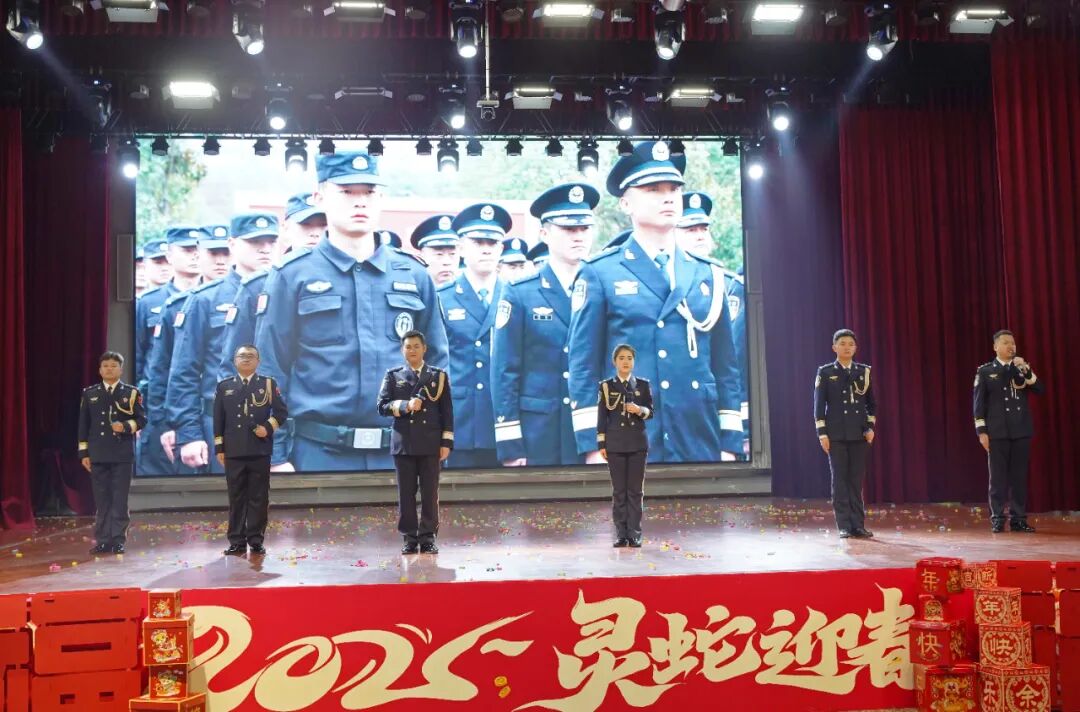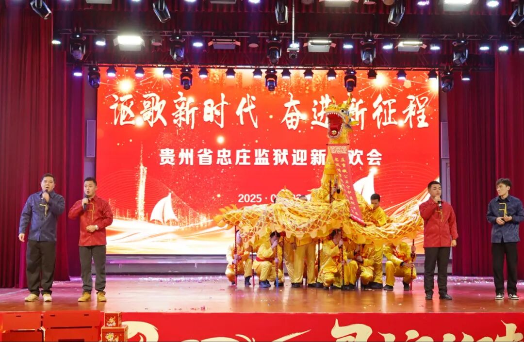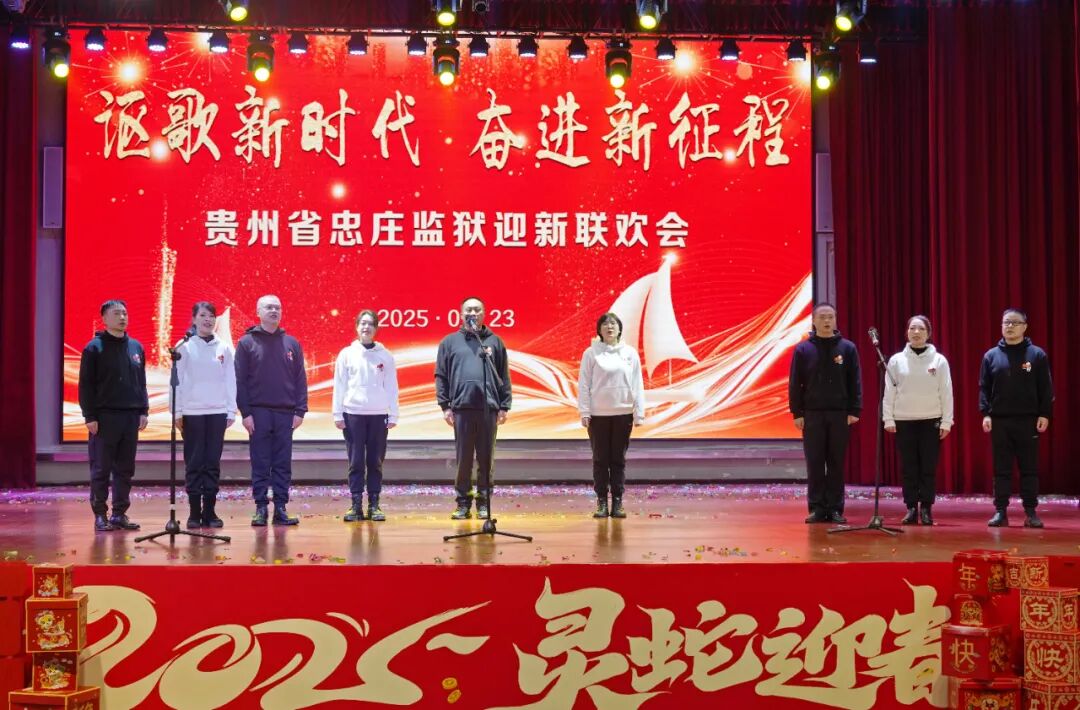 祥龙跃海辞旧岁,金蛇纳福启新程。1月23日,伴随着一曲热情欢腾的舞蹈,2025年忠庄监狱新春联欢会拉开帷幕。演绎大厅灯光璀璨、欢声笑语、喜气洋洋,监狱党委成员、部分民警、警属代表及职工共聚一堂,共贺新春。