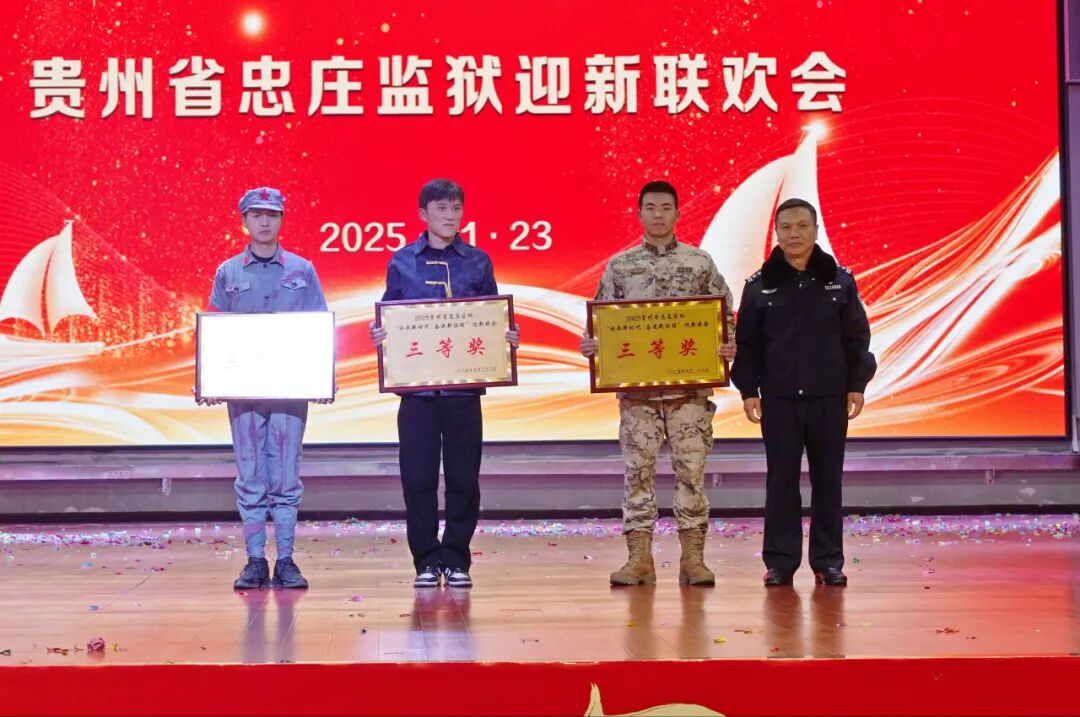 本次联欢会现场也评比出了节目的一二三等奖项,其中机关三、三监区支部表演的节目《翻身农奴把歌唱》获一等奖,监狱特警队节目《我心中的红》和机关六、六监区支部节目《四渡赤水出奇兵》获二等奖,机关五、五监区支部节目《映山红》、机关二、二监区支部节目《天地龙鳞》、驻监武警节目《醒狮贺岁》获三等奖。