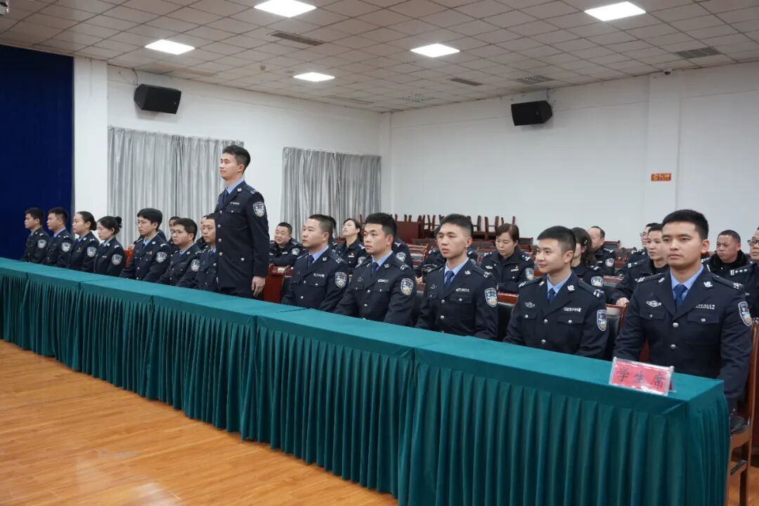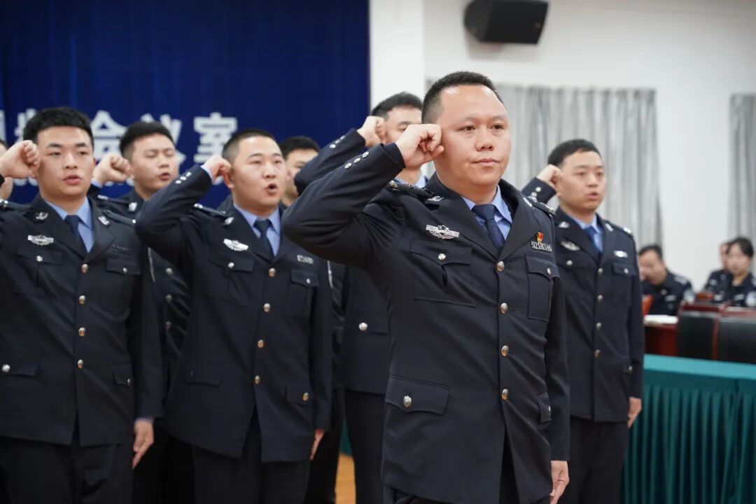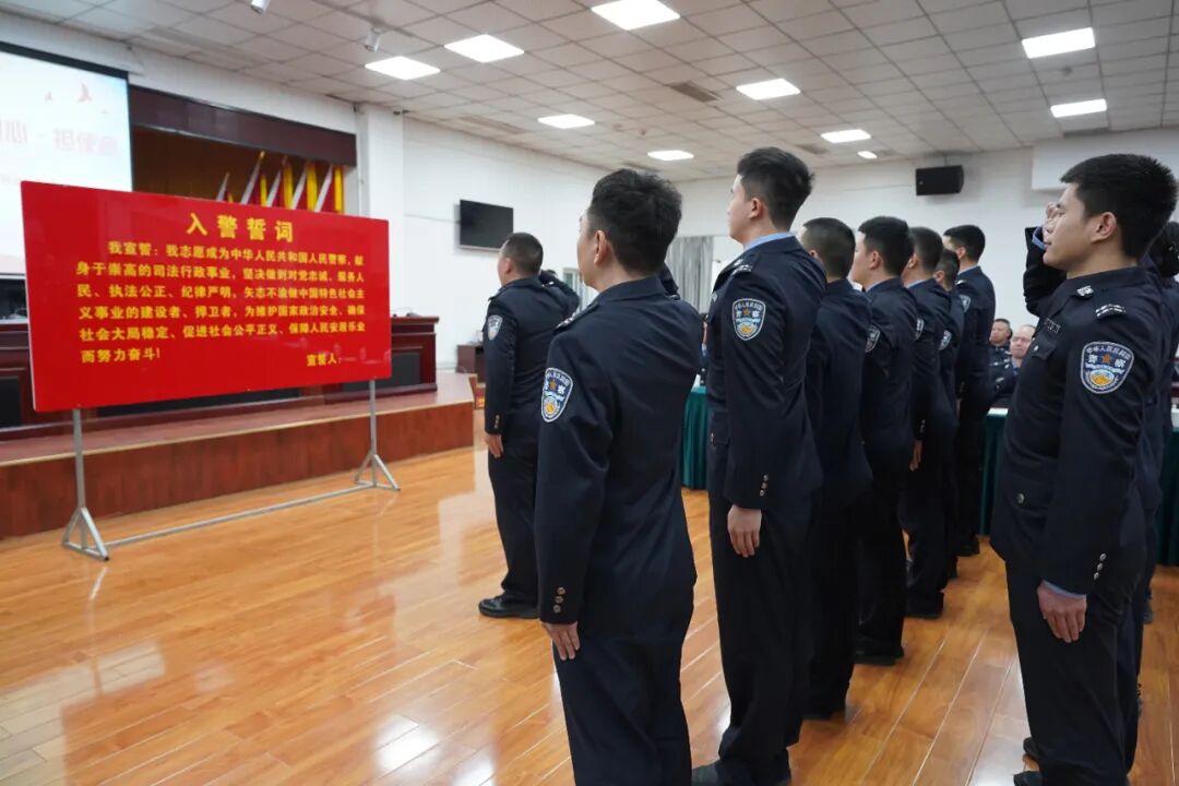 在老师代表李成江的领誓下,全体新警高举右拳,面向警旗庄严宣誓:“我志愿成为中华人民共和国人民警察,献身于崇高的司法行政事业”,誓言响彻会场,彰显青春热血。