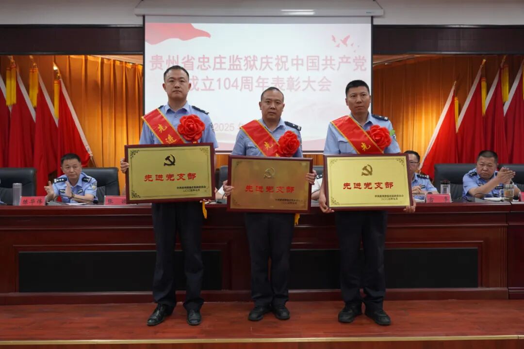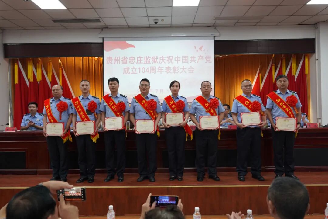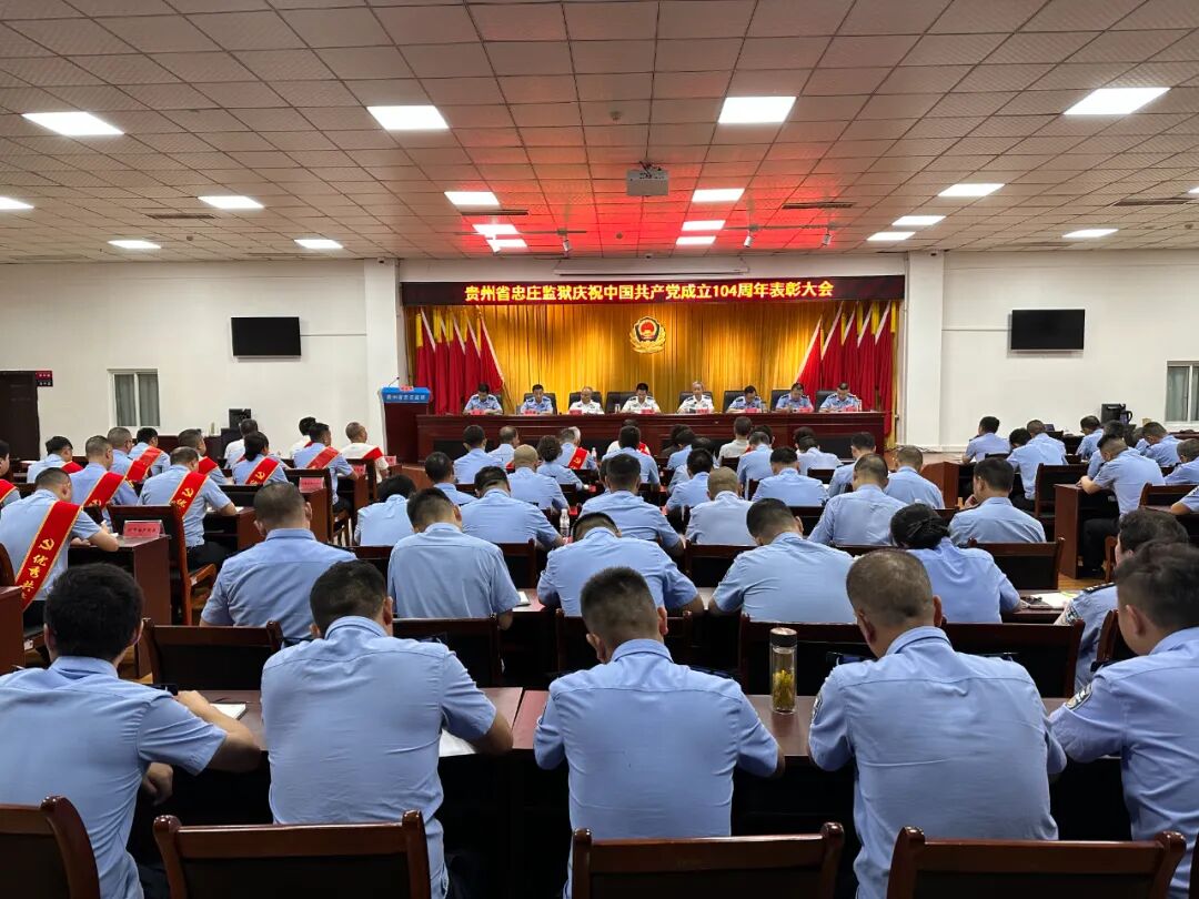 为庆祝中国共产党成立104周年,激发党员民警的责任感与使命感,7月1日,忠庄监狱召开庆祝中国共产党成立104周年表彰大会。党委书记、监狱长李钢出席会议并讲话,党委委员、副监狱长、公司总经理沈承献主持会议。监狱党委班子成员、部分离退休党员、受表彰的先进集体代表和优秀个人、中层领导及部分党员代表参加会议。