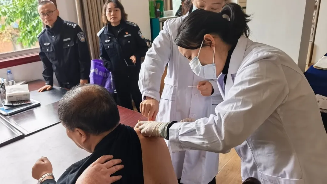 座谈会结束后,省司法警察医院医务民警为忠庄监狱民警提供中医问诊、健康咨询与专业指导,将健康关怀送到基层岗位。