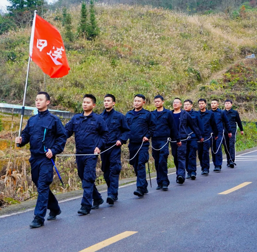 本次拓展活动突破常规体能训练模式,将竞争与合作融合,参训民警随机编为四个小组进行协同行进与任务挑战。活动不仅设定全程竞速目标,更在沿途关键节点设置了多项需紧密配合方可完成的团队拓展项目,旨在实战中锤炼民警的沟通协调、应急支援与集体攻坚能力。