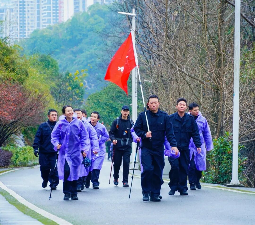 在行程后半段,随着体能消耗加剧,团队内部的鼓舞与扶持成为坚持到底的关键。有的队员主动分担负重,有的在陡坡处伸出援手主动帮助体力出现状况的队员,更有多名队员在自身疲劳情况下仍不断鼓舞小组士气,充分彰显了“不落一人、共赴目标”的团队信念。整个拉练过程,无一人掉队,无一组放弃,队伍始终在有序协作中稳步向前。
