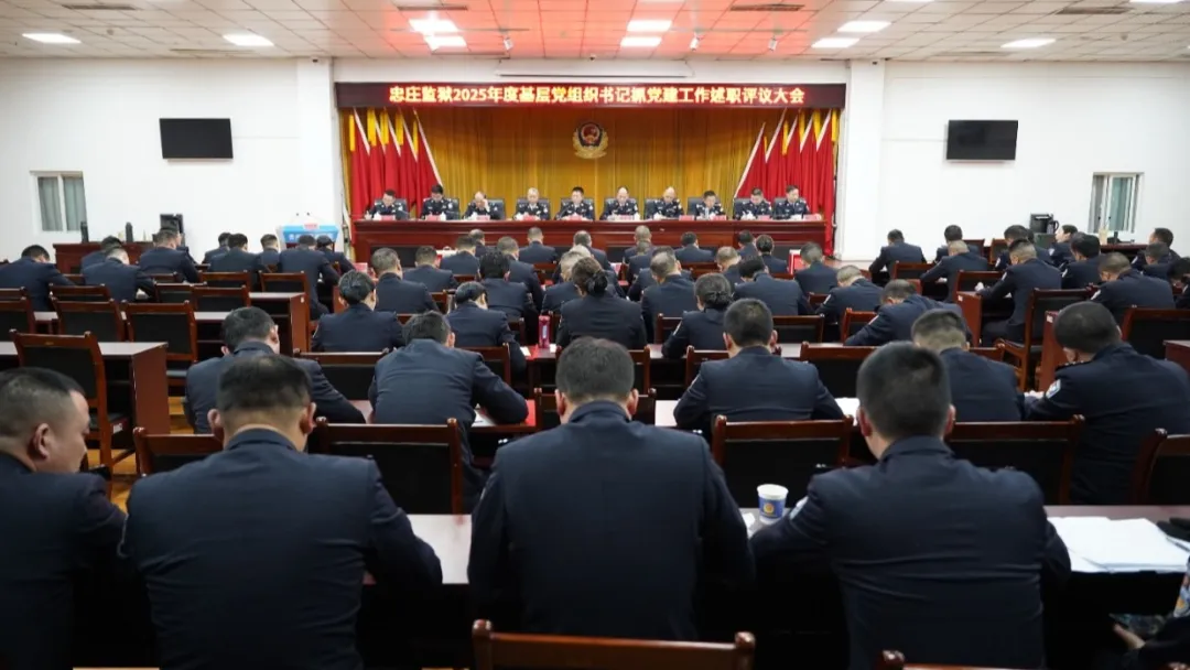 12月30日,忠庄监狱召开2025年度党组织书记抓党建工作述职评议暨科级中层领导干部述职述廉测评、政治素质考察测评大会。监狱党委班子成员、监属各党支部书记、中层领导干部及党员民警代表参加会议,会议由党委副书记、政委杨志军主持。