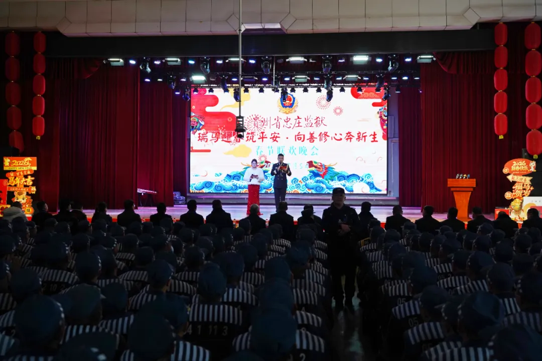 为充分发挥文化艺术的矫治功能,营造积极向上的改造氛围,2月5日,忠庄监狱举办以“瑞马迎春筑平安 向善修心奔新生”为主题的迎新春文艺汇演活动。活动特邀民盟遵义市委、遵义市文联、遵义市戏剧家协会、遵义市文化馆等社会团体进监演出,旨在以艺术浸润心灵,提升教育改造质效。