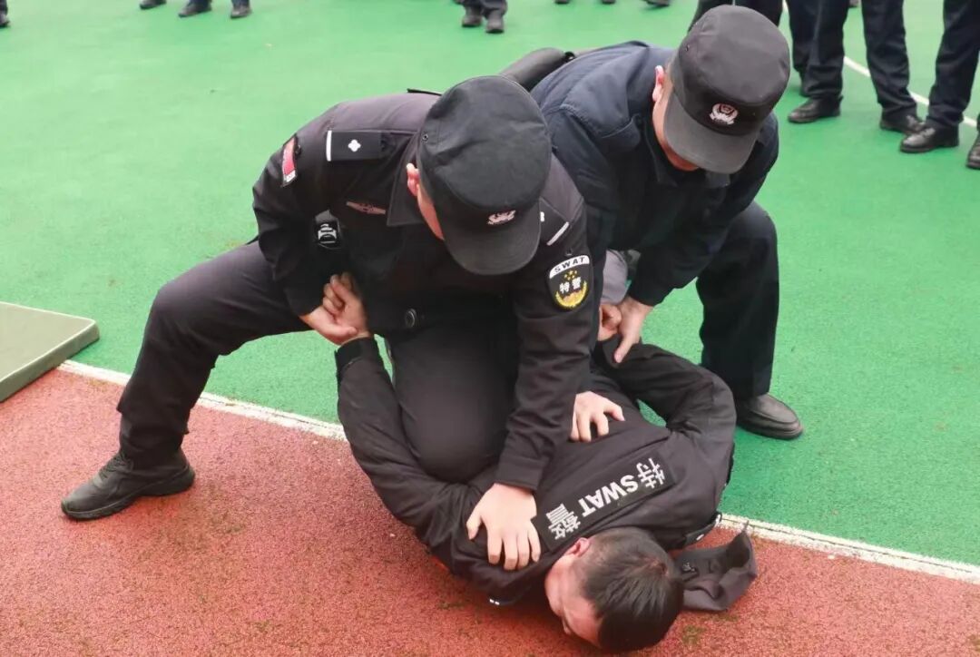 “警务技能测评”紧扣一线执法实战需求,设置徒手防卫与控制、警械具规范使用、搜身与带离等实操项目,并创新采用“情景模拟+应急演练”模式,还原狱内突发事件场景,重点检验跨部门协同响应、现场处置、战术决策等能力。考核中,民警们迅速进入“实战状态”,规范运用专业技能化解“险情”,充分展现了日常训练的扎实成果与应对复杂局面的过硬素质。