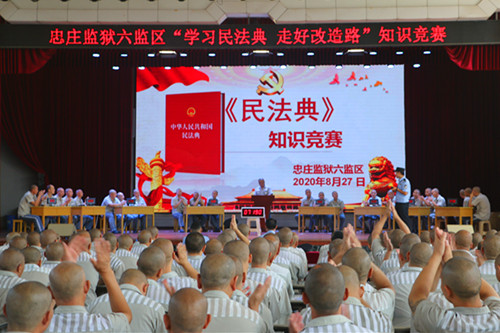 此次竞赛主题为“学习民法典、走好改造路”。为达到学以致用的普法宣传目的,民警精心准备了五十道试题,从《民法典》的定位、重大意义,到物权、合同、婚姻家庭、继承、侵权责任等罪犯高度关注的内容,帮助罪犯进一步熟悉《民法典》这部“社会生活的百科全书”,引导罪犯平时学法、遇事找法、处事用法。