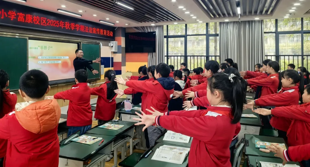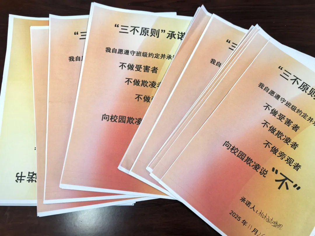 李建佳通过“案例解析+互动问答”的形式,引导同学们主动思考,在轻松愉快的氛围中,进一步加深了同学们对法律知识的理解,也在同学们的心中悄然播下法治的种子。随后,通过组织同学们签署了预防校园欺凌“三不原则”承诺书,不断提高他们尊法、学法、守法、用法的法治意识,懂得如何用法律武器维护自身合法权益,做新时代守法小公民。