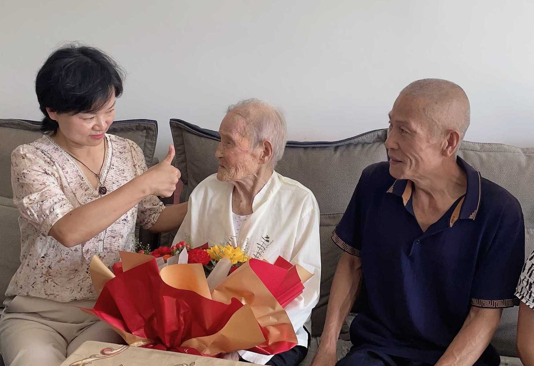 慰问组来到监狱离休干部遗孀百岁老人李玉兰的家中,为这位寿星送上鲜花及节日慰问品,共同庆祝她的104岁生日。“老人家现在身体怎么样?”走进百岁老人李玉兰的家中,监狱党委副书记、政委王玉兰与老人拉起了家常,询问老人的身体状况、日常生活和起居等情况。李奶奶虽已百岁,依然精神矍铄,身体硬朗,对大家的到来,老人显得格外高兴,看到这么多人来为自己庆祝生日,老人脸上露出了幸福的笑容,老人的家人也十分感动,屋内欢乐祥和、暖意融融。