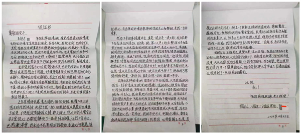 “我永远不忘患难时的帮助,永远心怀感恩,铭记在心,以阳光心态去积极投入改造”在信中张某道。