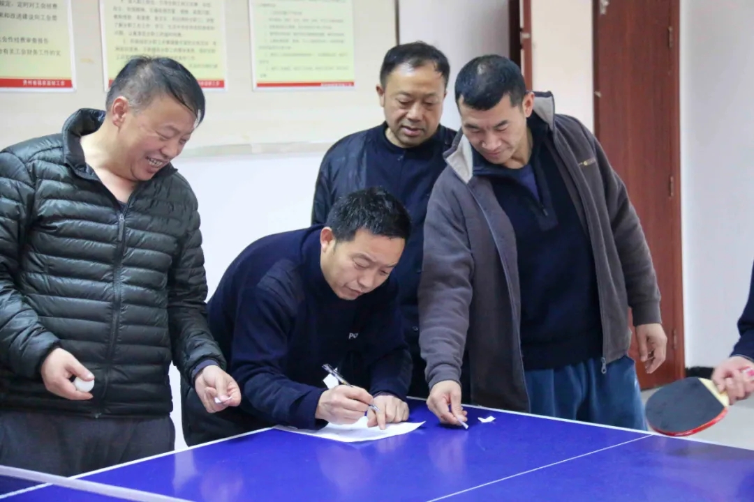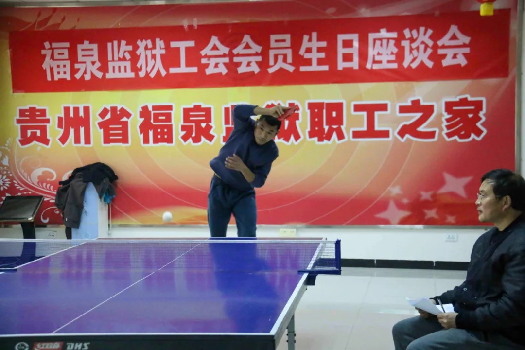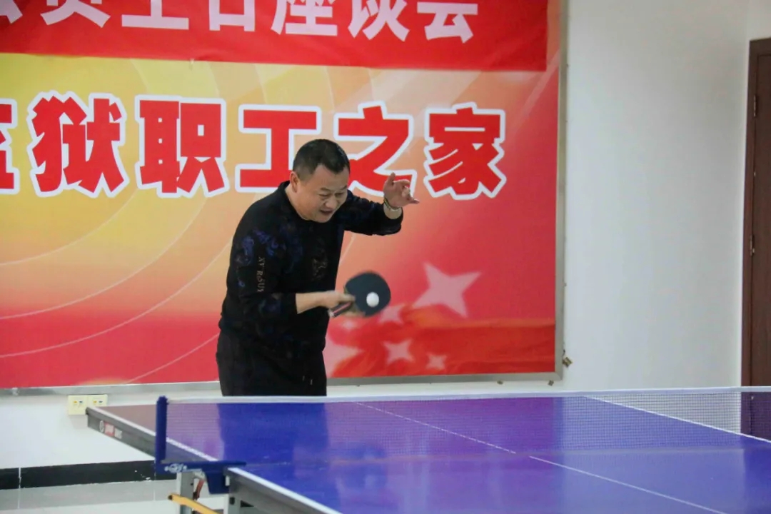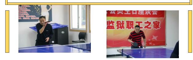 周六这天,监狱工会乒乓球室不时传出欢声笑语,这里正在进行的是“乒乓球兴趣小组迎新春友谊赛”。