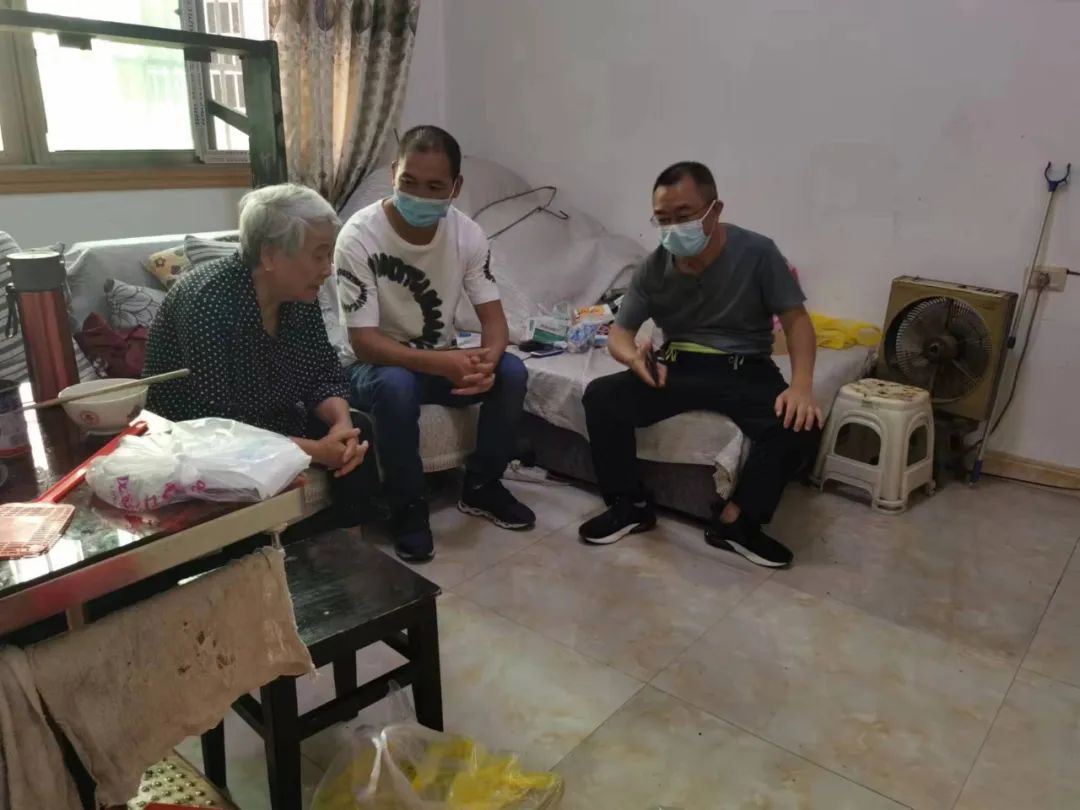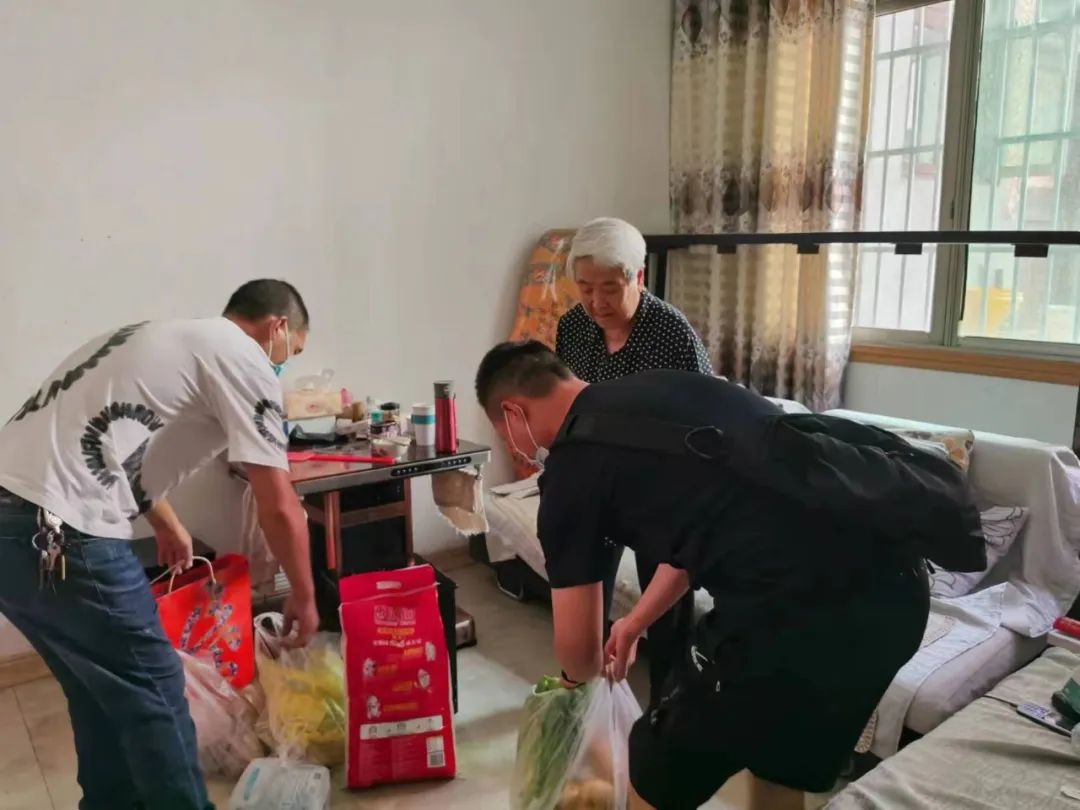 民警王坚临近退休,突遇疫情再次席卷而来,他主动请缨参与封监执勤,坚持战斗到最后一分钟。通过电话慰问民警王坚家属,了解到其母亲86岁独自在镇上生活,腿脚不方便,一个人生活,无人照顾。得知该情况后,立即上门走访慰问,给老人送去大米、油、肉、蔬菜等生活物资,转达监狱党委节日慰问和祝福。在交谈过程中,老人心情非常激动,眼眶红润地与慰问组握手连声道谢,哽咽地说:“我会照顾好自己,不给儿子添负担,让他安心工作。”随后慰问组向老人交代好服药、生活等细节后,明确具体负责人留下联系方式,定期进行随访。