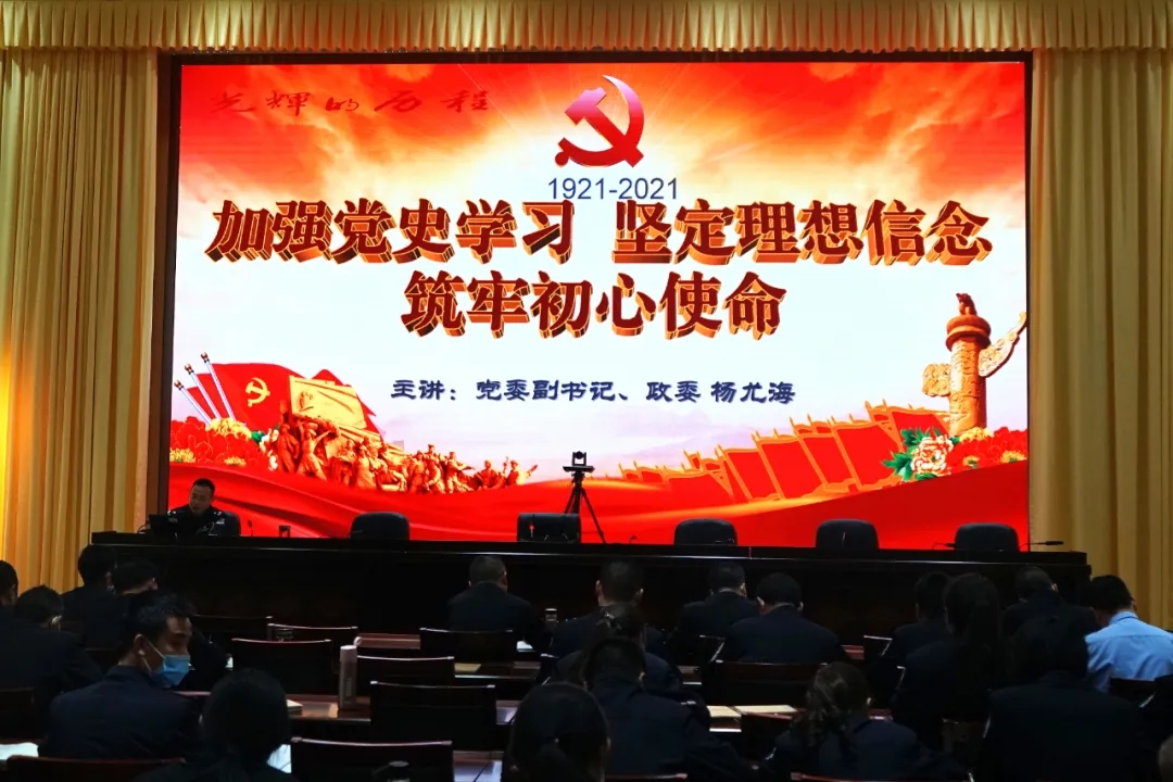 3月17日,海安监狱党委副书记、政委杨尤海以“加强党史学习 坚定理想信念 筑牢初心使命”的主题,为监狱党委班子成员、机关科室全体民警上党课。