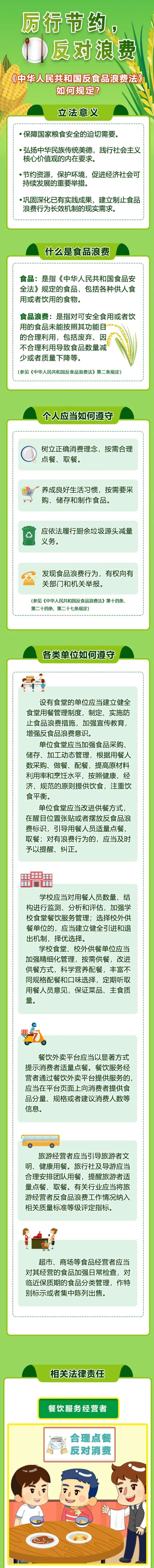 2021年4月29日《中华人民共和国反食品浪费法》正式施行,从此反对食品浪费不再仅仅是倡导和号召,而是有法可依的具体措施。