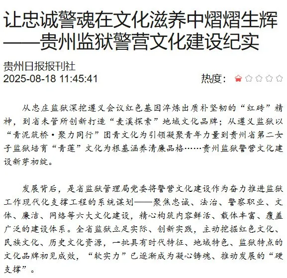 ——贵州监狱聚焦文化建设推进监狱工作发展