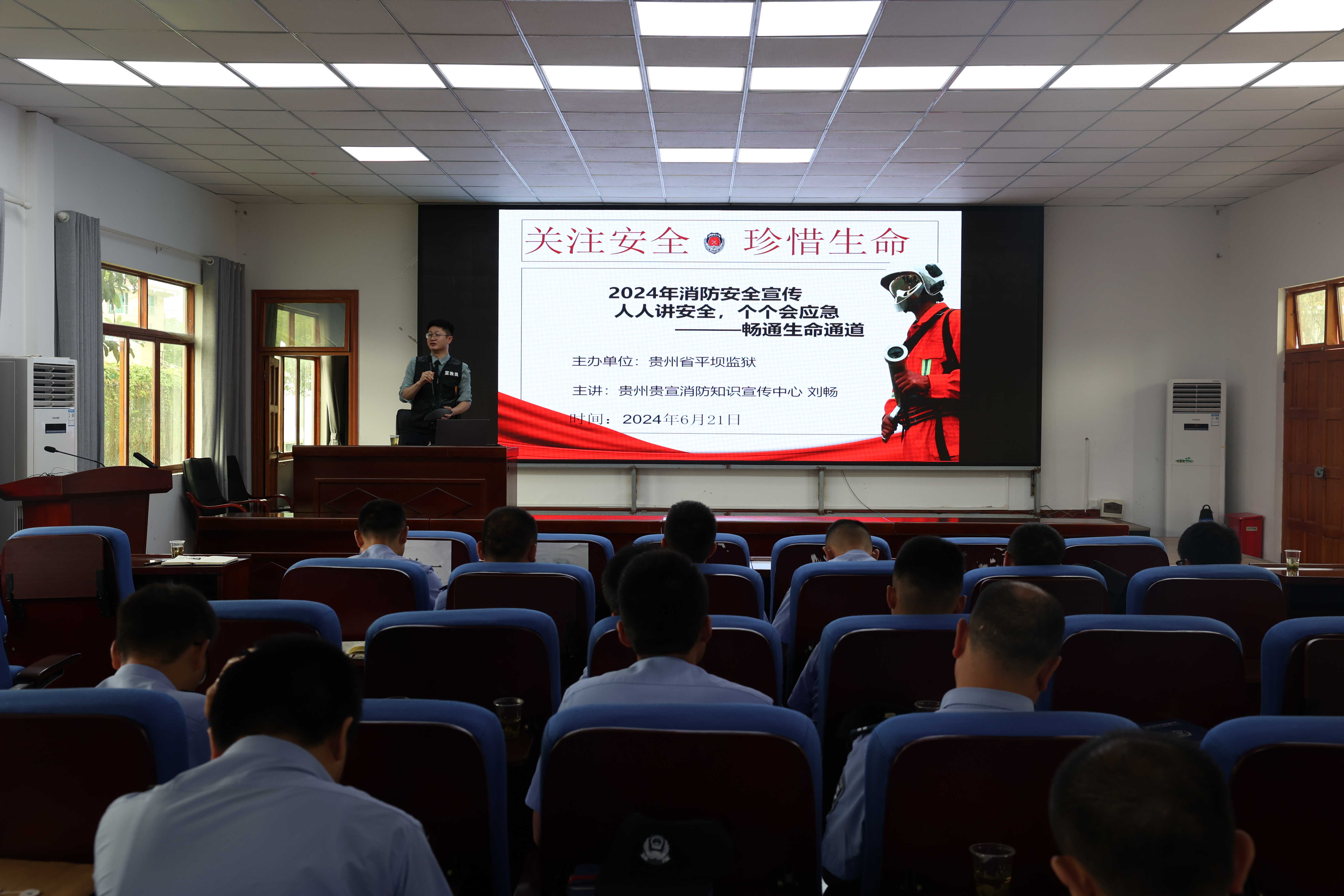 消防安全知识充电:6月21日,监狱安委办邀请全民消防知识宣传中心讲师刘畅,为全监民警开展专业消防安全培训,通过深入浅出的讲解、典型案例的剖析、图视频展示等,带领大家重点学习火灾防控能力。组织模拟火灾应急疏散,进一步强化参训民警掌握消防器材使用技巧。
