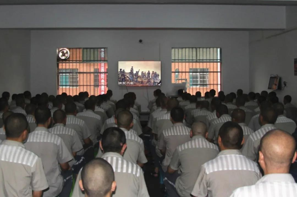 监狱组织全体罪犯观看国庆直播,并分批组织罪犯观看《建国大业》《建党伟业》《建军大业》等优秀爱国影片,一天一播,一天一学,进一步教育引导罪犯从思想上、情感上做到“五个认同”、“五个树立”。