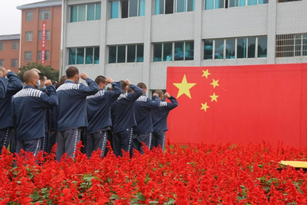 各监区组织罪犯升完国旗后,立即组织罪犯开展“向国旗宣誓”。