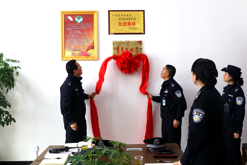 潘盛华监狱长、胡仕荣政委为青年文明号揭牌