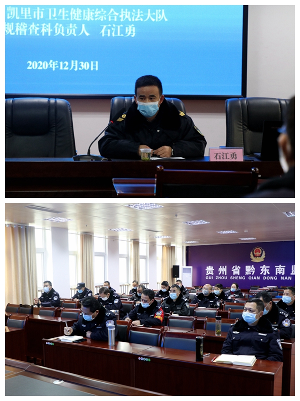 监狱生活饮用水安全关系民警和罪犯的身体健康和生命安全,是监狱生活卫生工作的重要内容。为加强监狱饮用水管理工作,提升饮用水安全管理水平,有效防范监狱突发公共卫生事件的发生,12月30日,黔东南监狱邀请到凯里市卫生健康综合执法大队法规稽查科负责人石江勇为监狱民警培训生活饮用水卫生监督相关知识,监狱领导、后勤科全体民警、各监区、分监区领导、干工食堂水电班职工共计40余人参加培训。