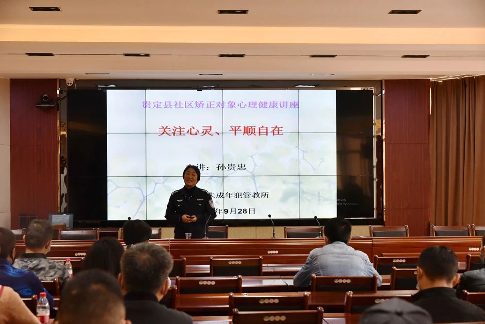 省未管所二级心理咨询师民警孙贵忠还给社区矫治人员开展了一场主题为 “关注心灵、平顺自在” 的心理健康知识讲座,以缓解社区矫正人员心理压力,提升心理健康水平,从而推进社区矫正心理矫治工作。