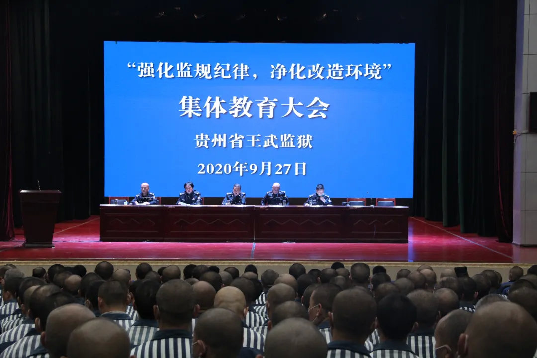 9月27日上午,在中秋、国庆“两节”即将到来之际,王武监狱组织500多名罪犯在监狱教育堂开展“强化监规纪律,净化改造环境”节前集体教育大会。