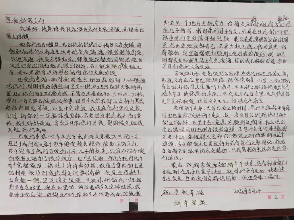 以家书寄思念,缓解罪犯节日思乡之情。积极开展好一封家书活动,让罪犯以家书的形式,向家中亲人汇报改造成绩,送上自己的心愿与祝福,传递思念之情,也将自己对未来生活的向往,内化为罪犯的改造动力,这些真挚的文字也有效缓解了罪犯的思乡、思家和思亲之情。