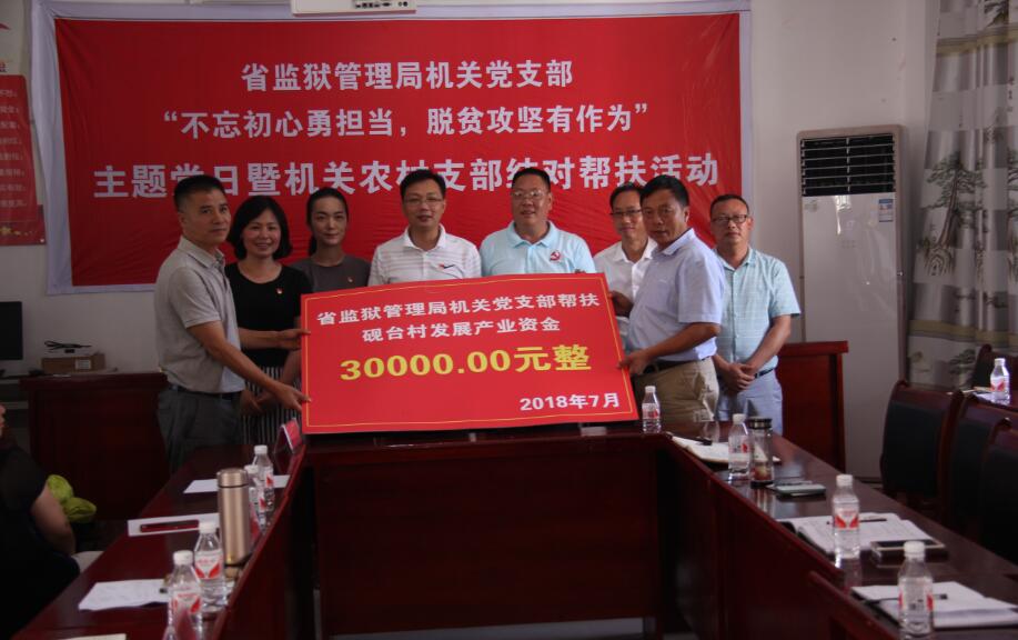 全系统各级党组织和各广大党员认真落实省委省政府大扶贫战略,积极参与脱贫攻坚工作,在脱贫攻坚中彰显责任担当、筑牢战斗堡垒。局机关党组织深入帮扶点了解群众实际困难,积极筹集资金18万元为凤冈县砚台村修建灌溉水渠,解决150余户、600多人的人畜饮水及500亩土地农业灌溉用水问题。7月,组织全省监狱系统50个党支部到贫困村开展“不忘初心勇担当·脱贫攻坚有作为”主题党日暨“机关农村支部结对帮扶”活动,为群众宣讲省委十二届三次全会精神,进行产业帮扶、走访慰问、捐赠帮扶资金、与结对党支部共过组织生活。探讨脱贫攻坚工作举措、产业发展方向,充分发挥监狱系统在信息、政策、人才、资源、技术、法律等方面的优势,助推贫困村和贫困群众脱贫致富。10月,组织局机关党支部到凤冈县砚台村,开展“走进砚台村、与贫困群众共度扶贫日”主题党日活动,为群众宣讲脱贫攻坚政策,帮助理清发展思路。局机关党员干部积极为砚台村巩固脱贫成果、推进产业结构调整、夯实基础建设以及助推乡村振兴发展出思路、想办法,共商共议,为早日实现同步小康献策献力。