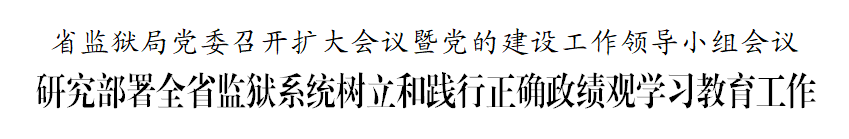 3月2日,省监狱局党委召开扩大会议暨党的建设工作领导小组会议,传达学习贯彻习近平总书记关于树立和践行正确政绩观的重要论述,全面落实中央党的建设领导小组会议和省委常委会暨党的建设工作领导小组会议精神,研究部署全省监狱系统树立和践行正确政绩观学习教育工作。省监狱局党委书记、局长、局党的建设工作领导小组组长陈刚主持会议。