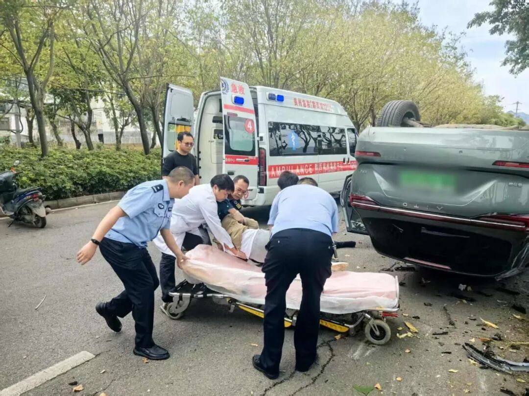 “你现在哪里不舒服,别担心,120急救车在路上了......”在等待救援期间,三人上前查看伤者情况,并不停安抚伤者情绪。不久,交警和120急救车到场后,三人配合将伤者送上救护车,并向交警讲述了解到的现场情况。待现场交通秩序恢复后,三人继续踏上安全检查的路途。