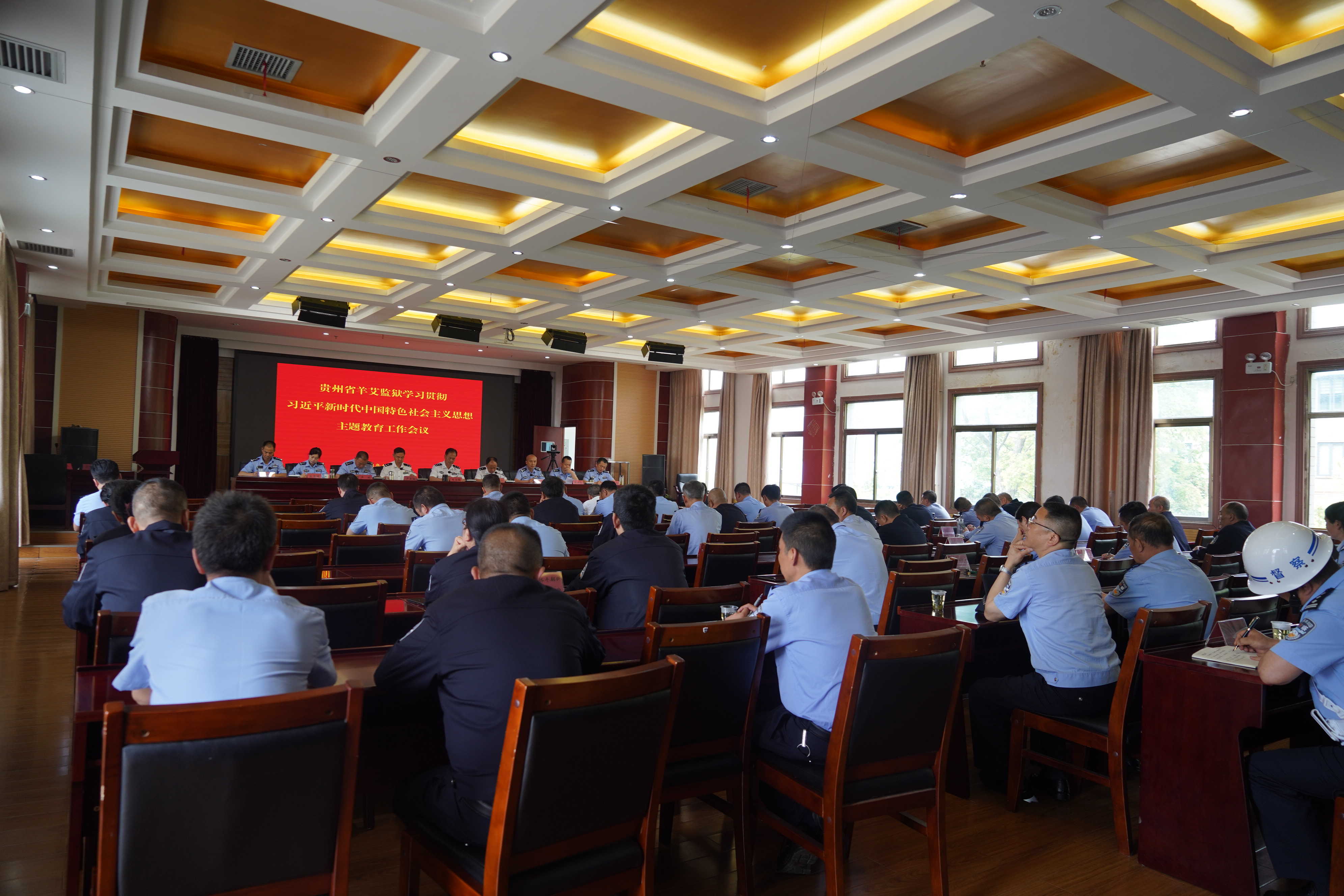 为深入开展学习贯彻习近平新时代中国特色社会主义思想主题教育,4月21日,贵州省羊艾监狱召开学习贯彻习近平新时代中国特色社会主义思想主题教育工作会议,深入学习习近平总书记关于主题教育的重要讲话精神及省、厅、局主题教育工作会议精神,研究部署我监主题教育工作。党委班子成员、四级高级警长以上职级人员、正科级领导干部出席会议。党委书记、监狱长李启禄作动员讲话。会议由党委副书记、政委庞东江主持。